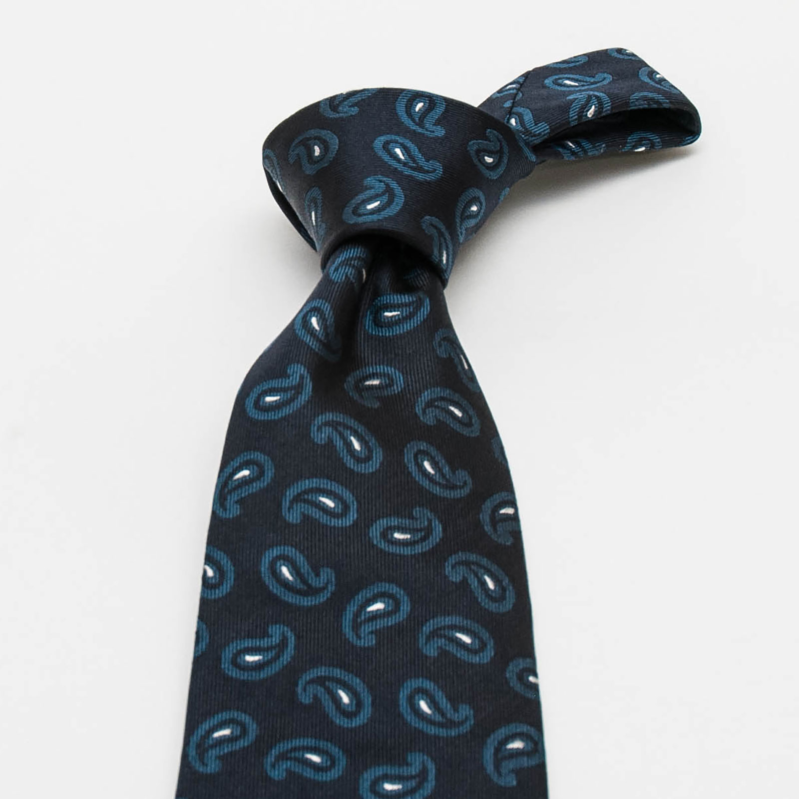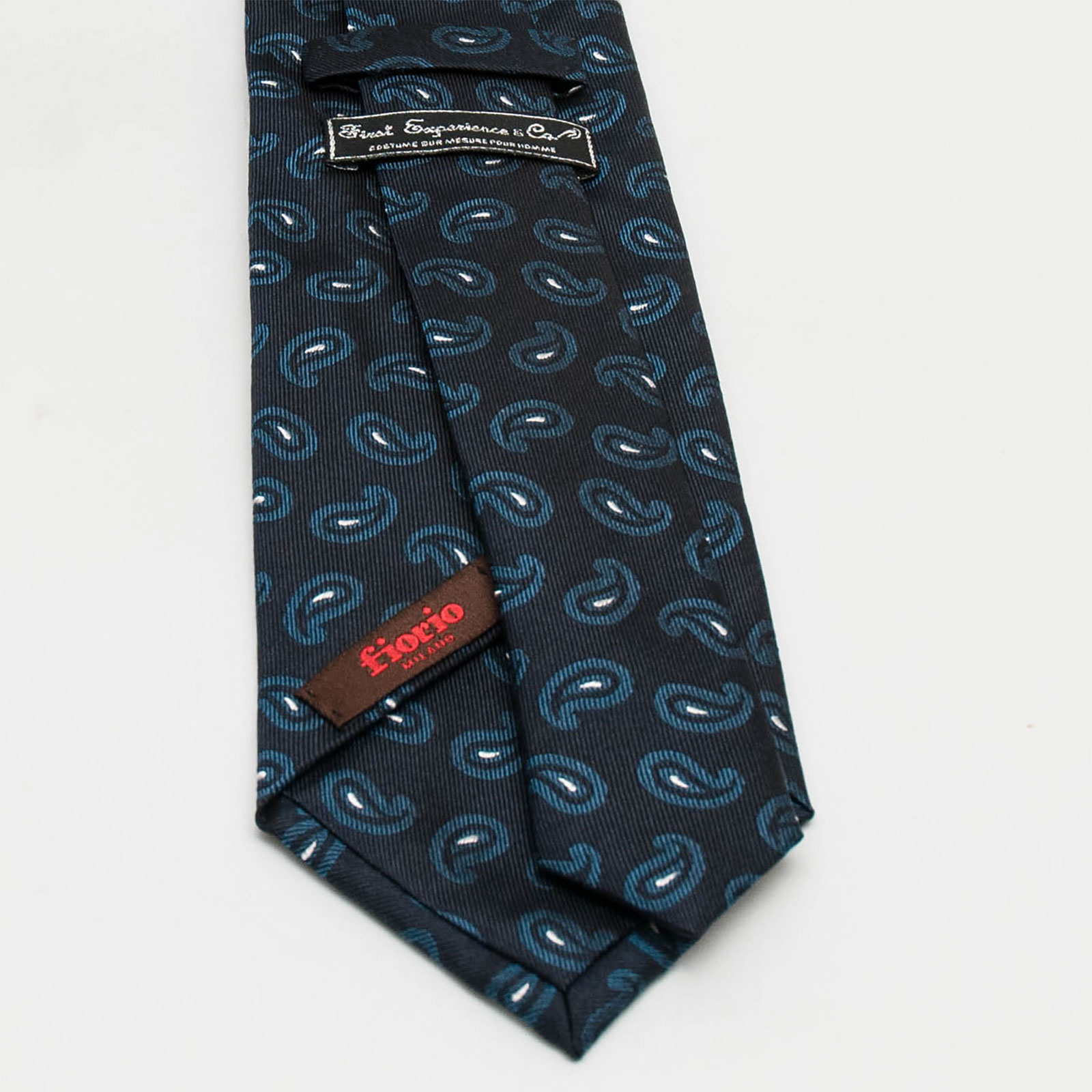 イタリアFIORIOの素材を使いを使い京丹後の新進気鋭の職人が1本1本手縫いで仕上げたきれいなネイビーのペイズリー柄のタイです。