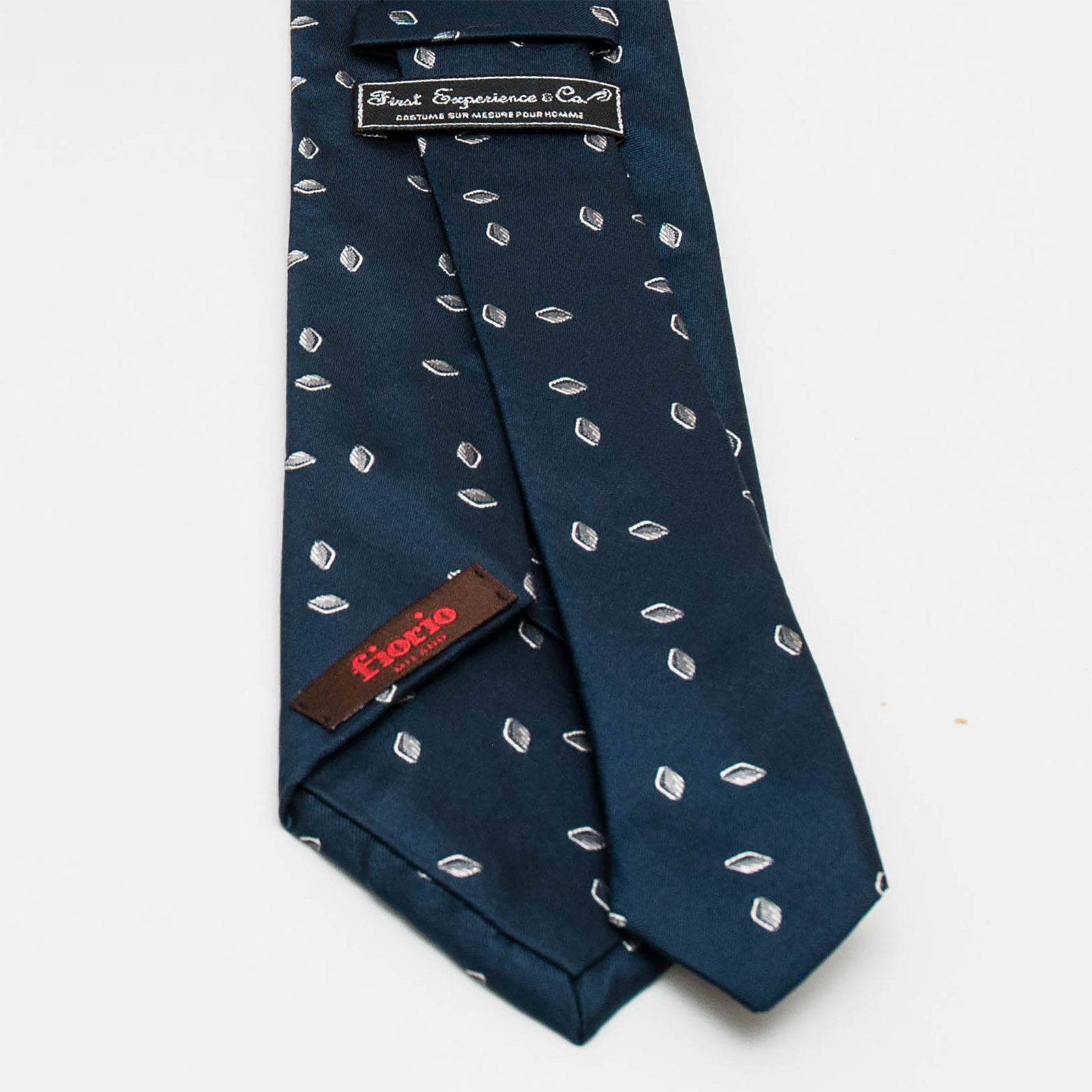 イタリアFIORIOの素材を使いを使い京丹後の新進気鋭の職人が1本1本手縫いで仕上げたきれいなネイビーの小紋柄のタイです。