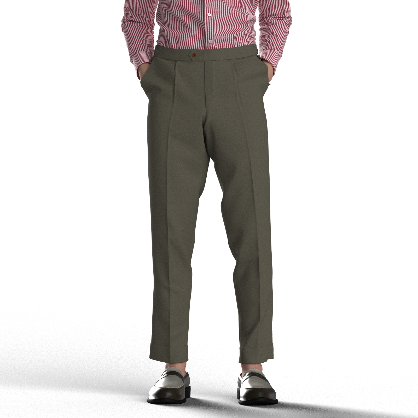 タテ糸にフルダル糸、ヨコ糸にしなやかな伸縮性を持つSOLOTEXを使用したカーキのチノストレッチ。中肉厚でハリコシがあり、ポリエステルながら天然ライクなマットな表面感が特徴的な素材です。