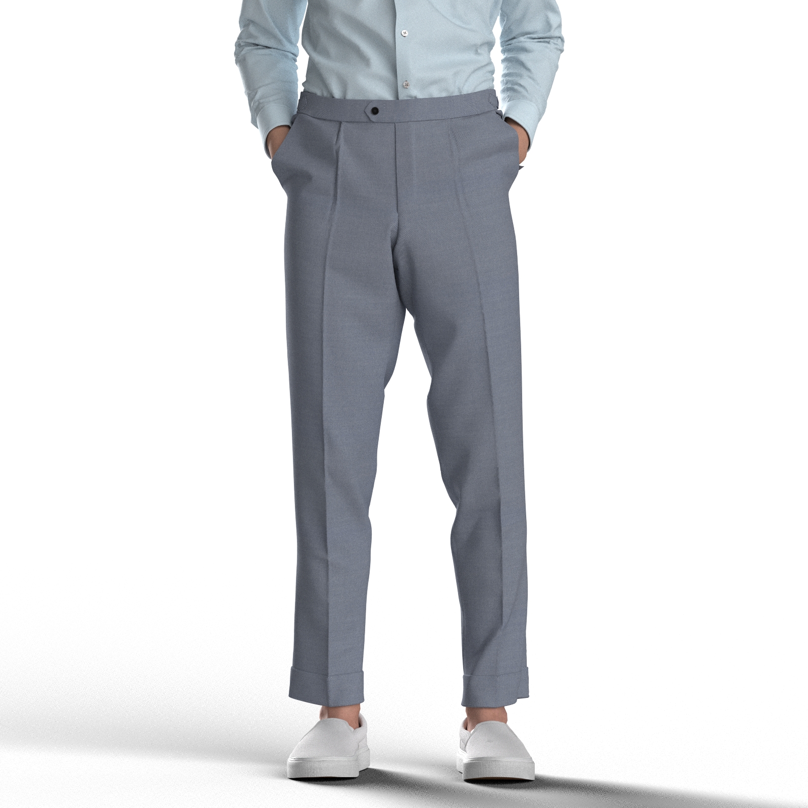 イージーケア性に優れたCOOLMAX Eco Madeの80双糸の高番手をクールマックステクノロジーで加工したサックスに近いブルーのバイオウエザー生地です。
