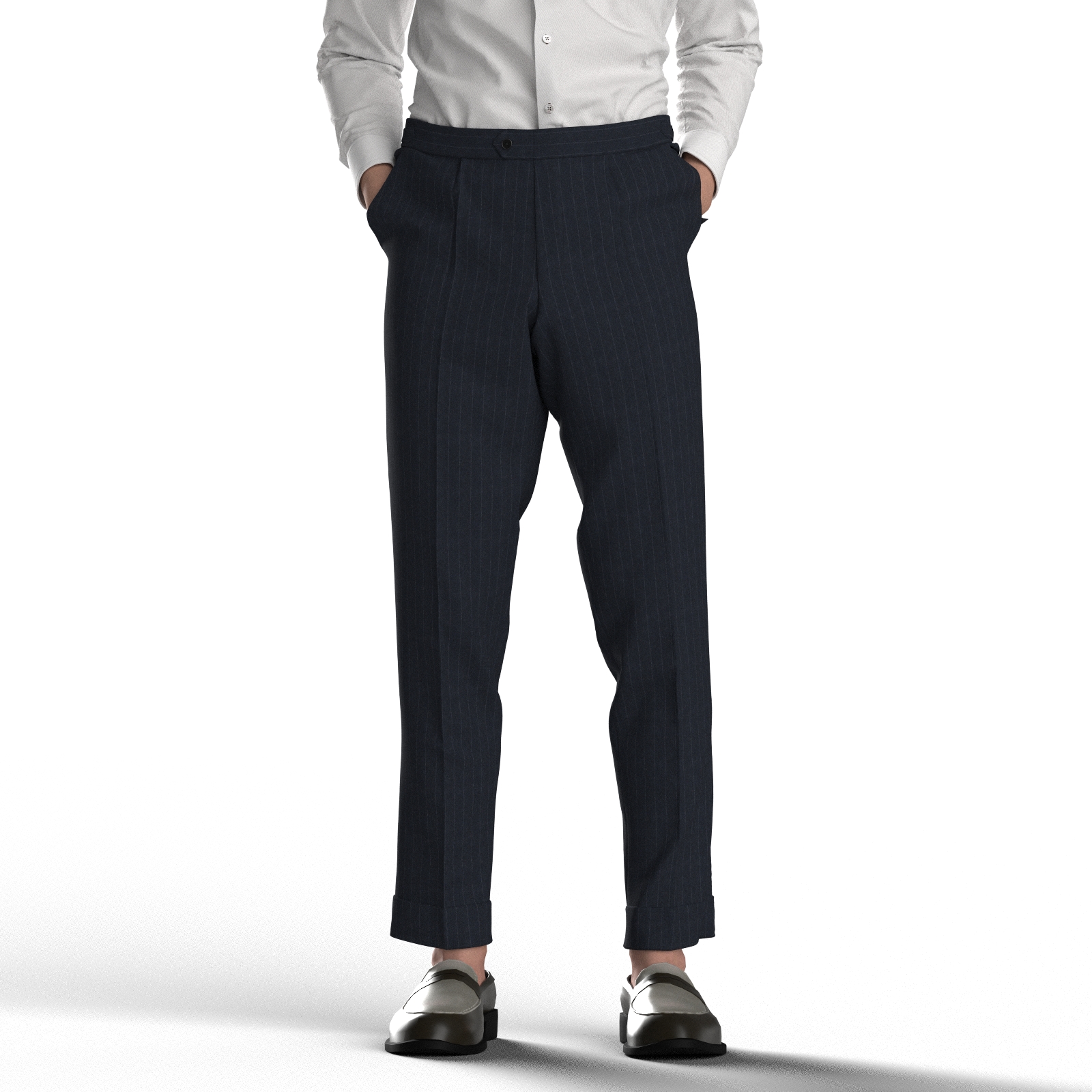 BASIC SELECTION STRECH ライトネイビー チョークストライプ(AK102291)