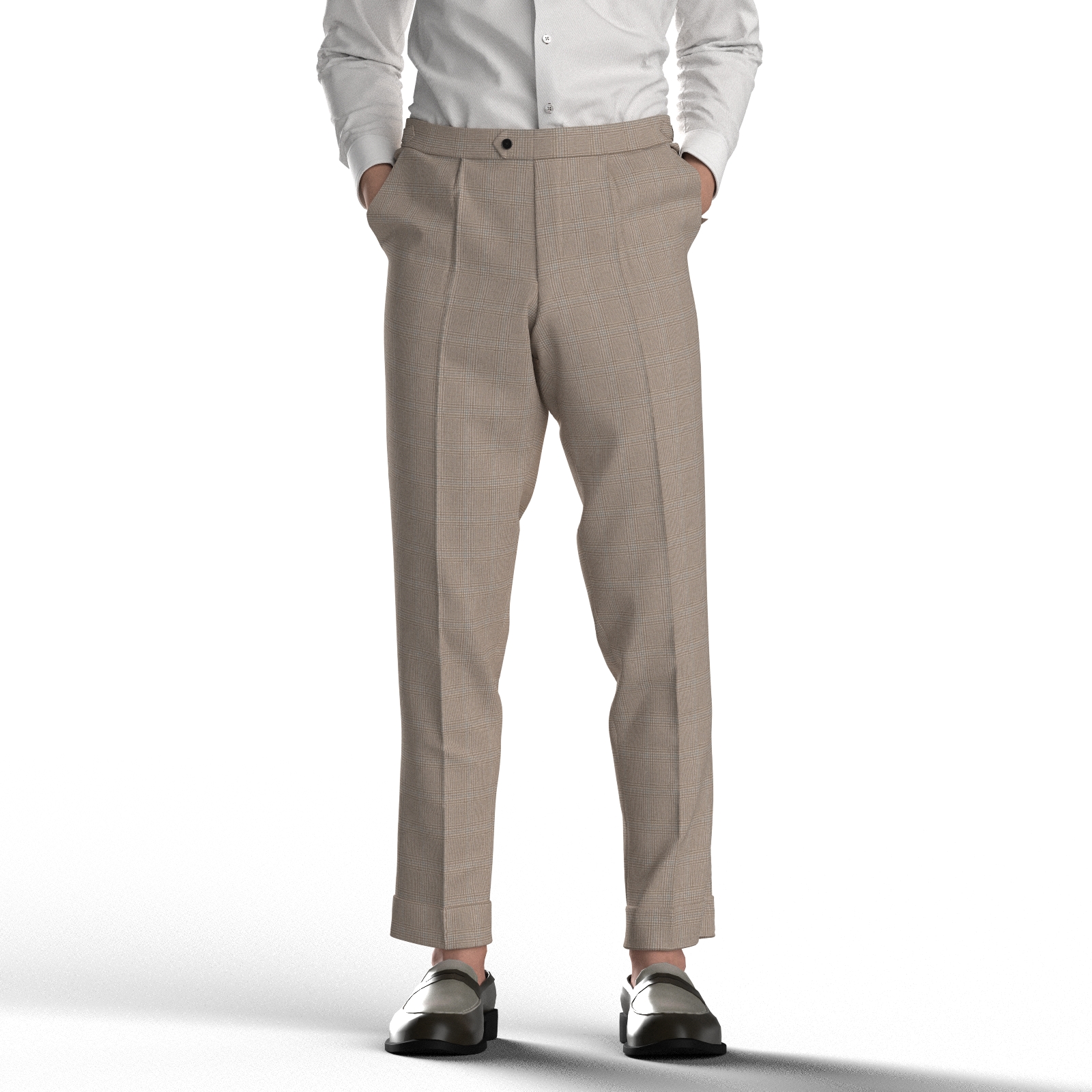 BASIC SELECTION STRECH リネン混ベージュグレンチェック(AK1022893)