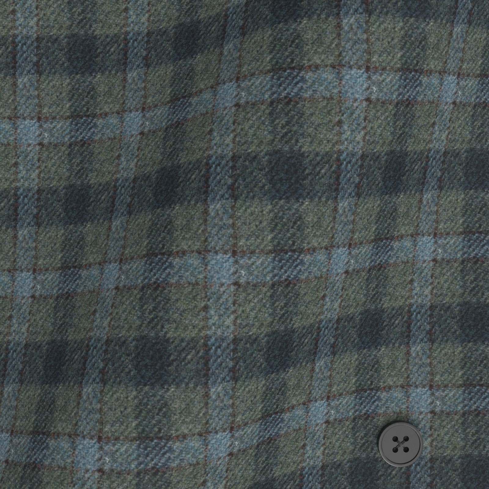 老舗ツイードブランドLOVATのTHE HOLM TWEEDのグリーンベースにブルー濃淡の格子柄生地です。