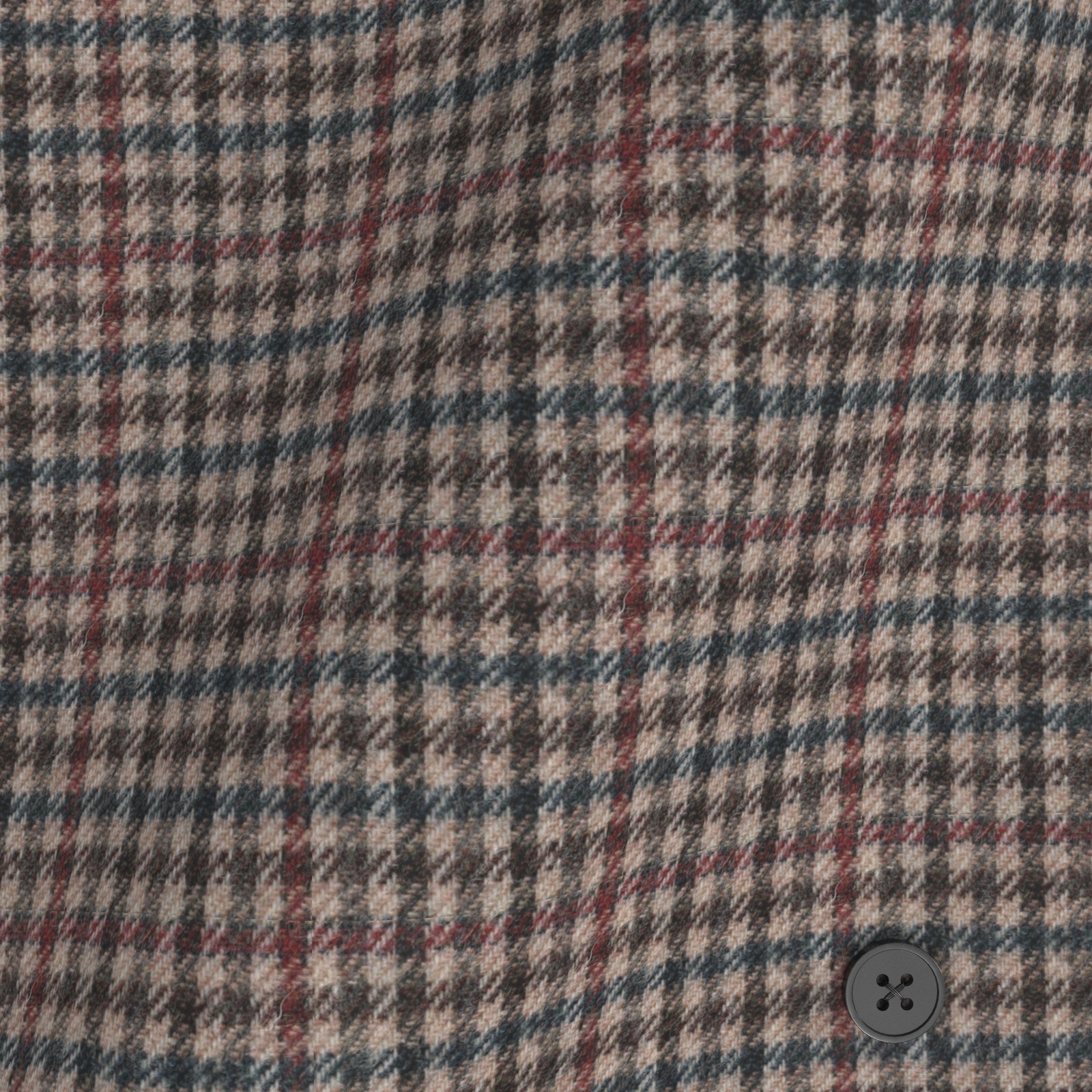老舗ツイードブランドLOVATのTHE HOLM TWEEDのベージュベースにレッド×ブルー×ブラウンの格子柄生地です。