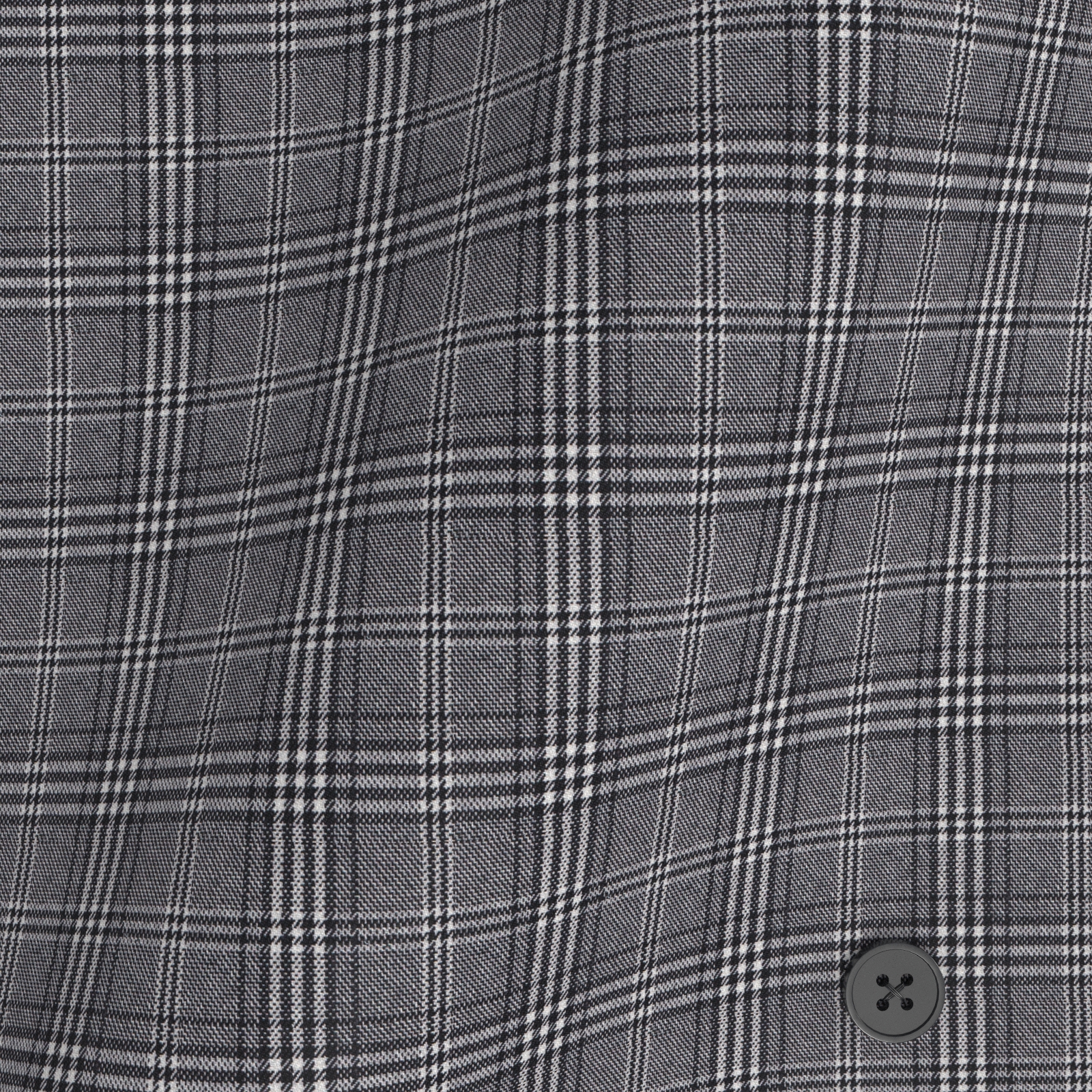 イージーケア性に優れ、高感度で機能性の高いLANATECのオフホワイトとブラックのグレンチェック生地です。ウールライク・ファブリックで軽いストレッチがビジネスシーンのストレスを軽減する素材です。