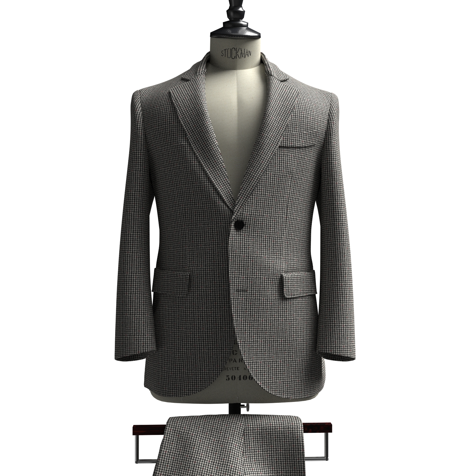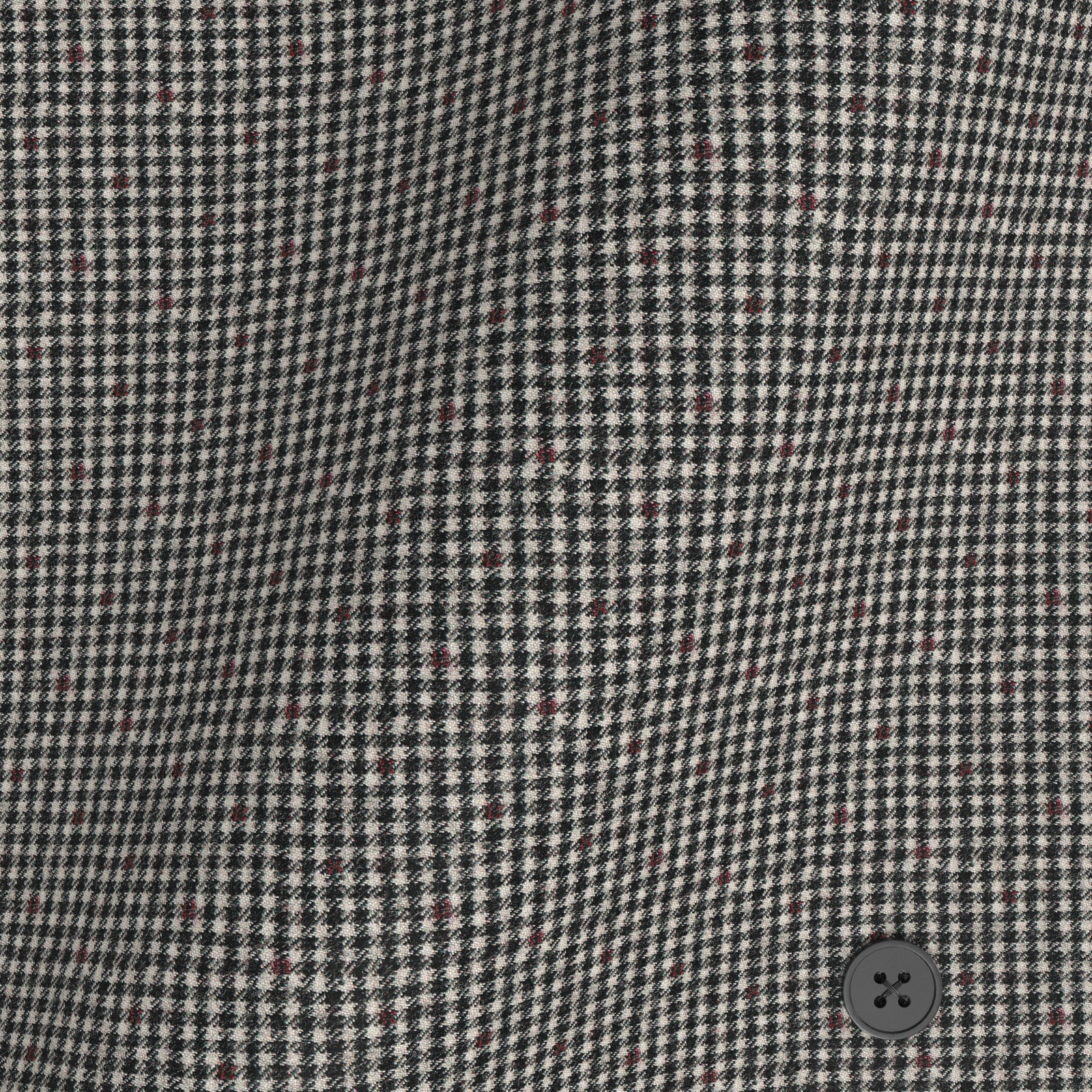 イタリア・ビエラの名門REDAの秋冬から春にかけて最適なサキソニー調の少しだけ起毛感のあるブラック・チェックにレッドのドット入り生地です。
