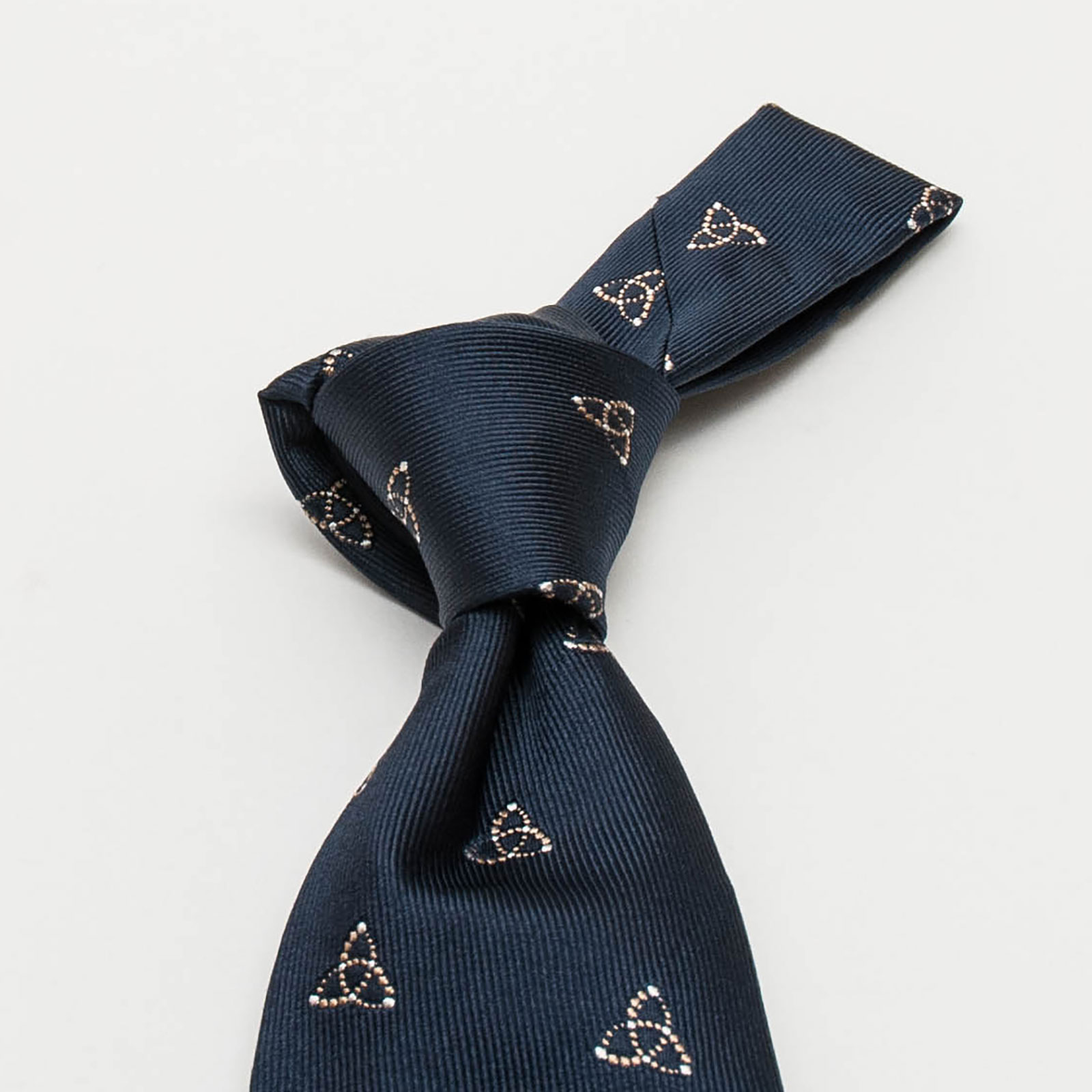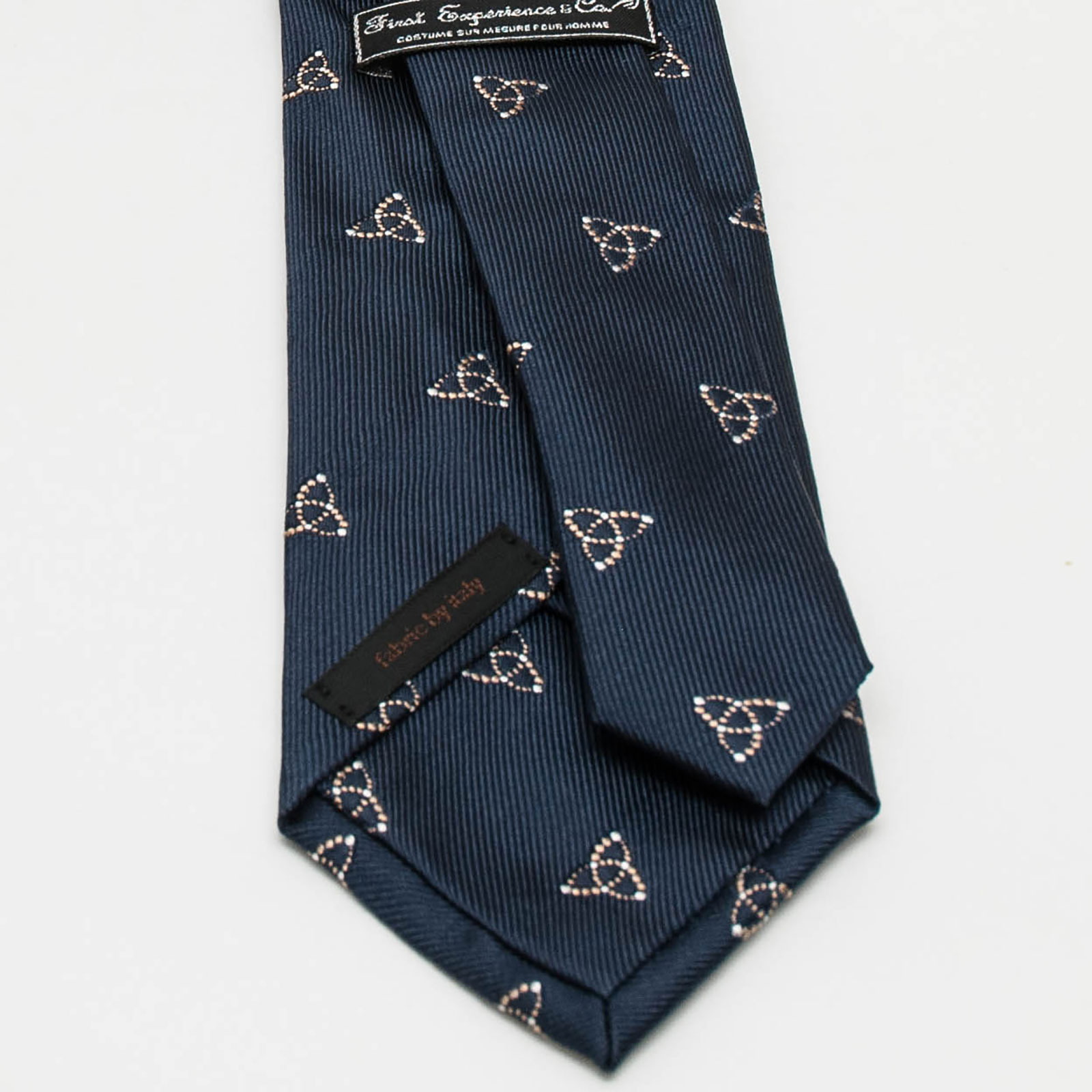 イタリアの素材を使い京丹後の新進気鋭の職人が1本1本手縫いで仕上げたきれいなネイビーにサークル柄のタイです。