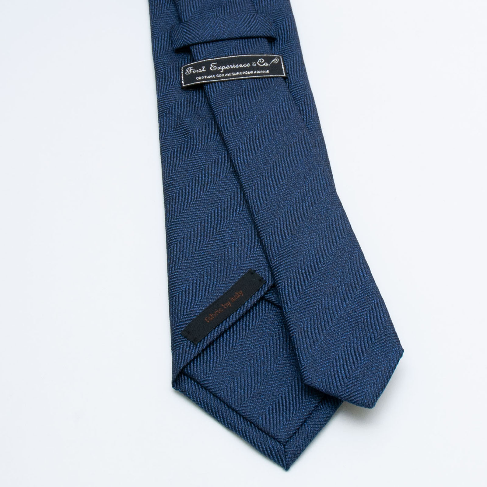 イタリアの素材を使い京丹後の新進気鋭の職人が1本1本手縫いで仕上げたきれいなブルーのヘリンボーン柄のタイです。
